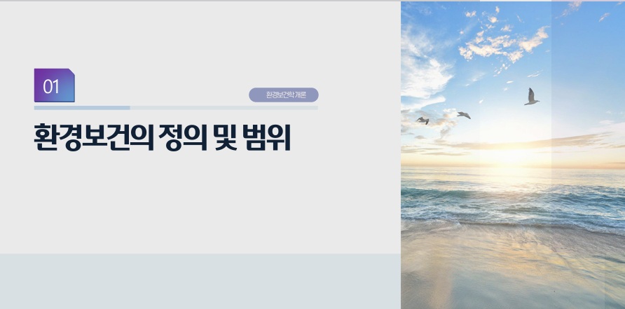 1.환경위생/환경공학: 인간에게 부적합한 환경을 관리 및 개선해 가기 위한 학문이다.