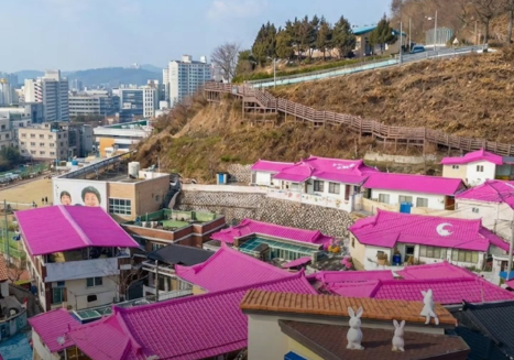 바로 핑크 지붕이 모여 있는 신세동 벽화마을이에요.